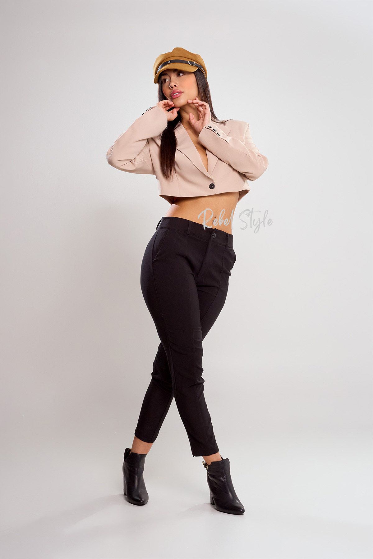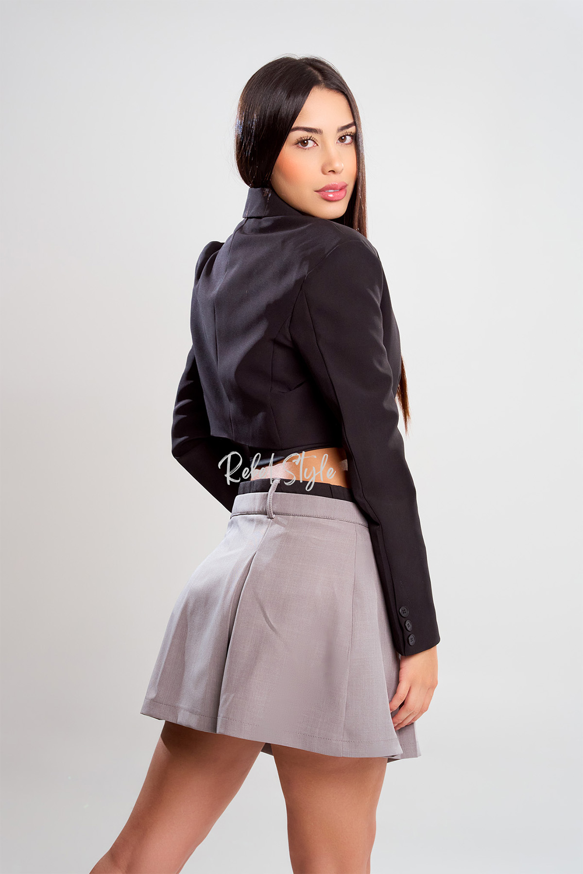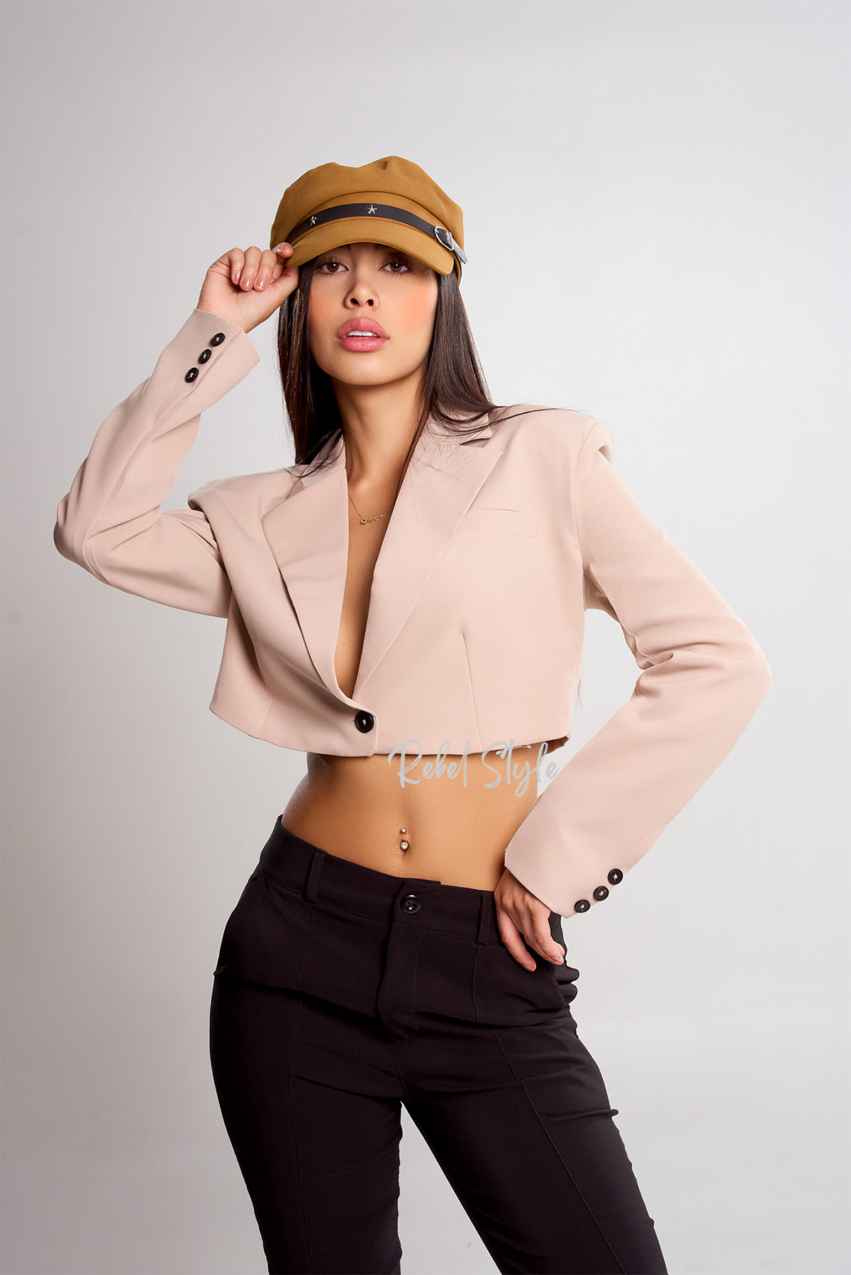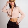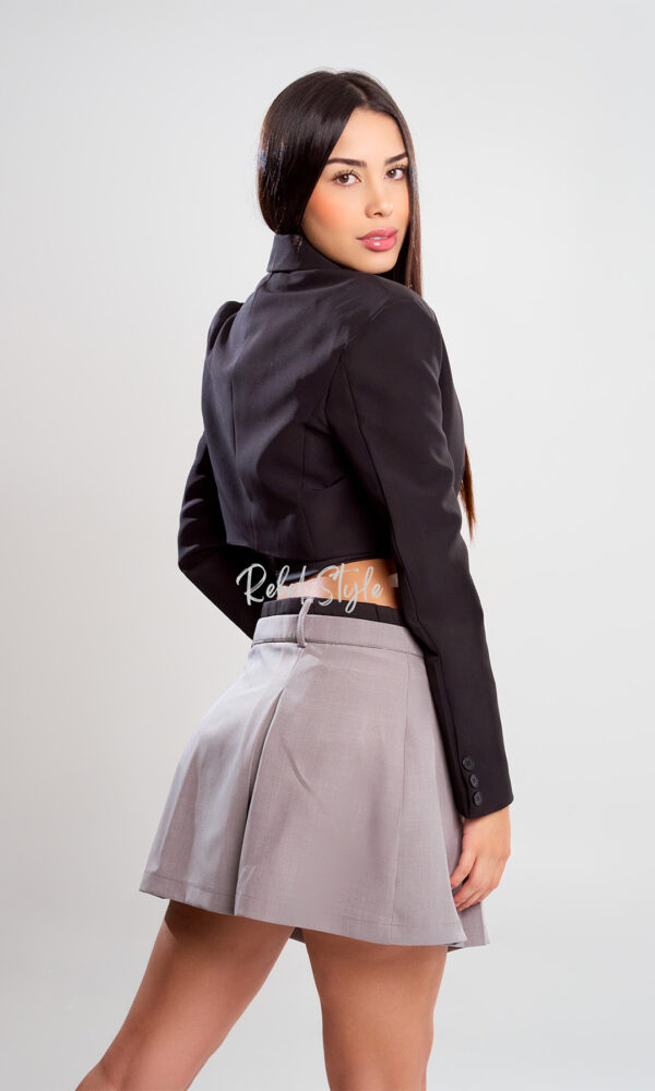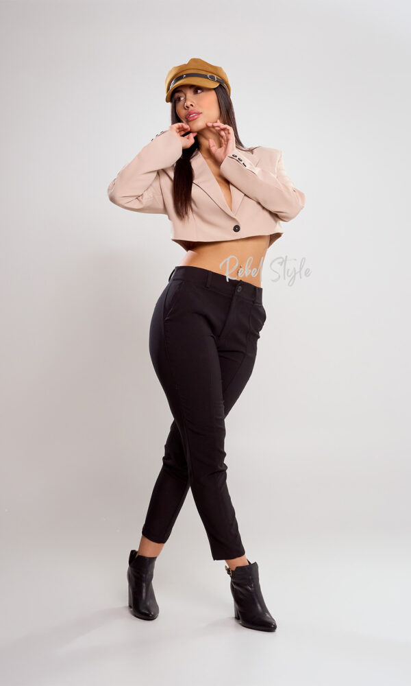 El blazer referencia Solara es una prenda moderna y sofisticada que aporta un aire elegante con un toque juvenil. Está confeccionado en tela lino armani, cuenta con hombreras que realzan la estructura, además de un forro interno que asegura comodidad y un acabado prolijo. Su diseño corto lo convierte en una pieza versátil ideal para looks frescos y contemporáneos.