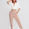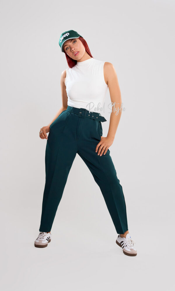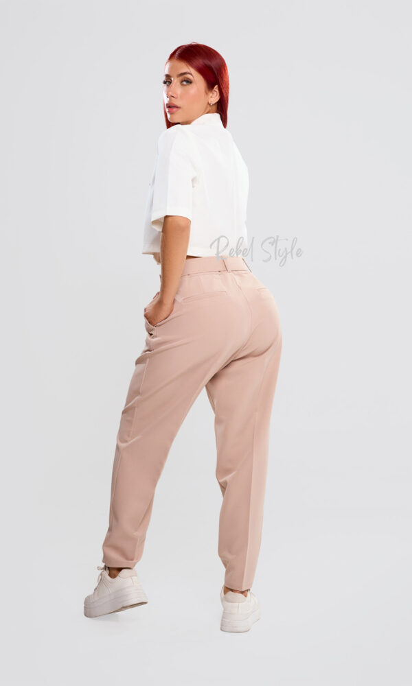 Ideal para combinar con blusas estructuradas o tops básicos, este pantalón también se luce a la perfección con blazers o chaquetas ligeras. En cuanto al calzado, puedes adaptarlo a tu estilo: mocasines para un look casual y chic, stilettos para un aire sofisticado, o sneakers para un giro urbano y moderno.
