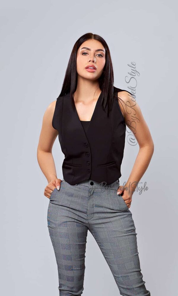 El chaleco Doll es una prenda moderna y funcional con un diseño forrado en tono a tono que le otorga una apariencia pulida y elegante. Esta prenda es extremadamente versátil y puede ser combinada de múltiples formas. Ideal para llevarlo con pantalones de vestir en un look formal, o sobre un vestido para una salida más casual. También es perfecto para usarlo con una camiseta básica debajo, logrando un estilo relajado pero chic. Su corte ajustado realza la figura, convirtiéndolo en un must-have para cualquier guardarropa. Material: Noches de viena, forro interno tono a tono. Detalles adicionales: Botones contraste tono a tono. Nuestra modelo mide 1,68 y usa el Chaleco Doll en talla S.