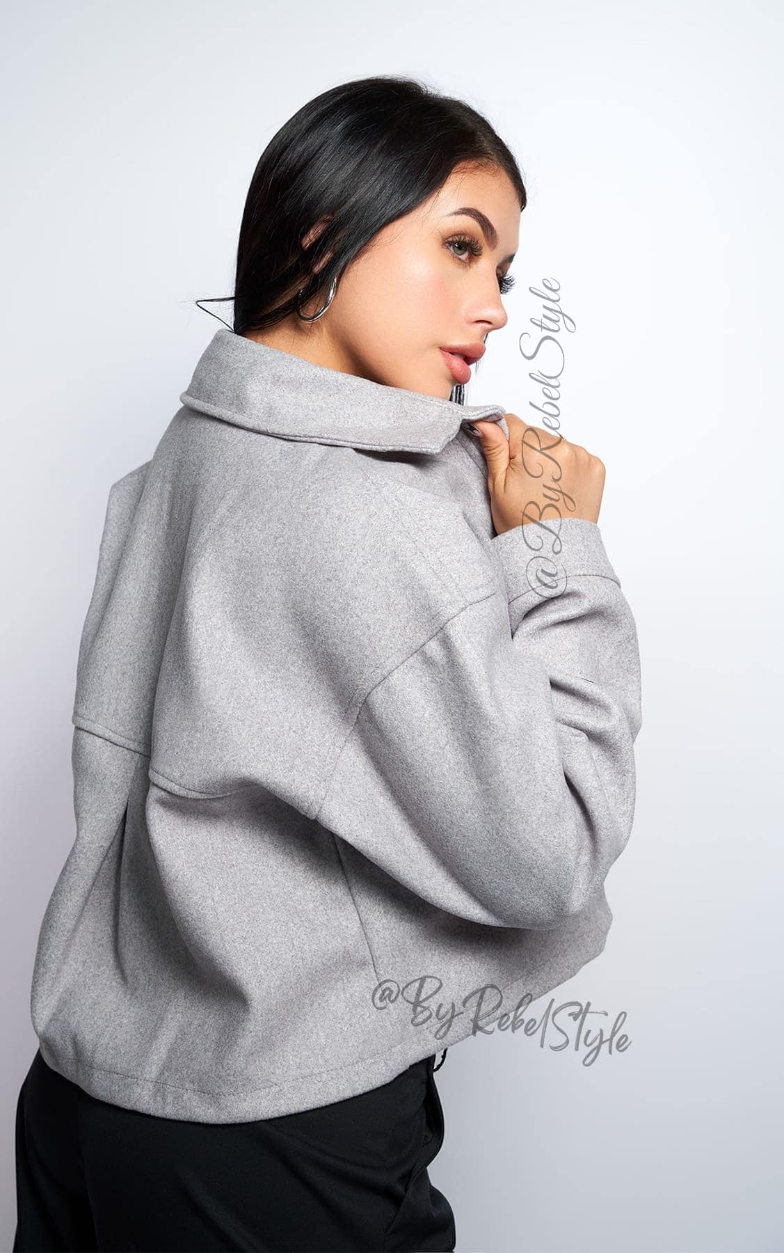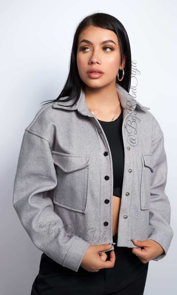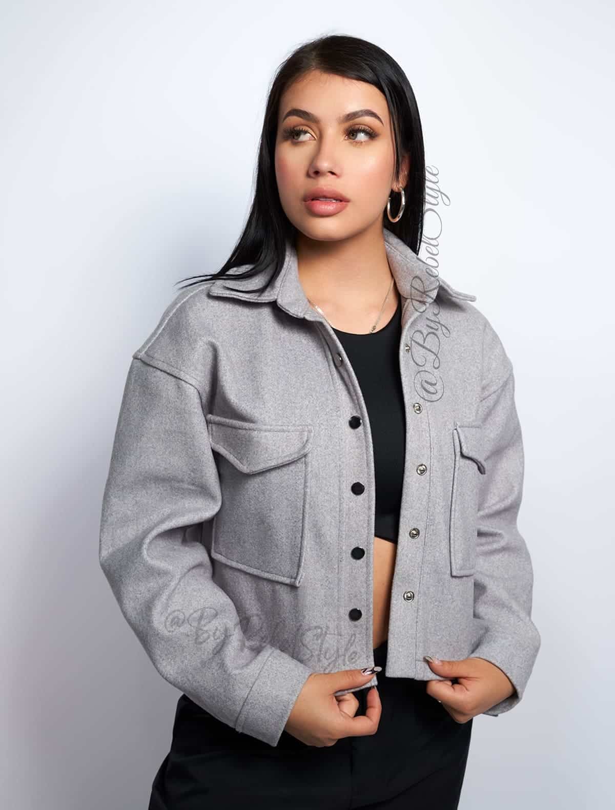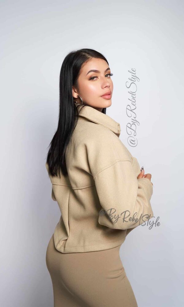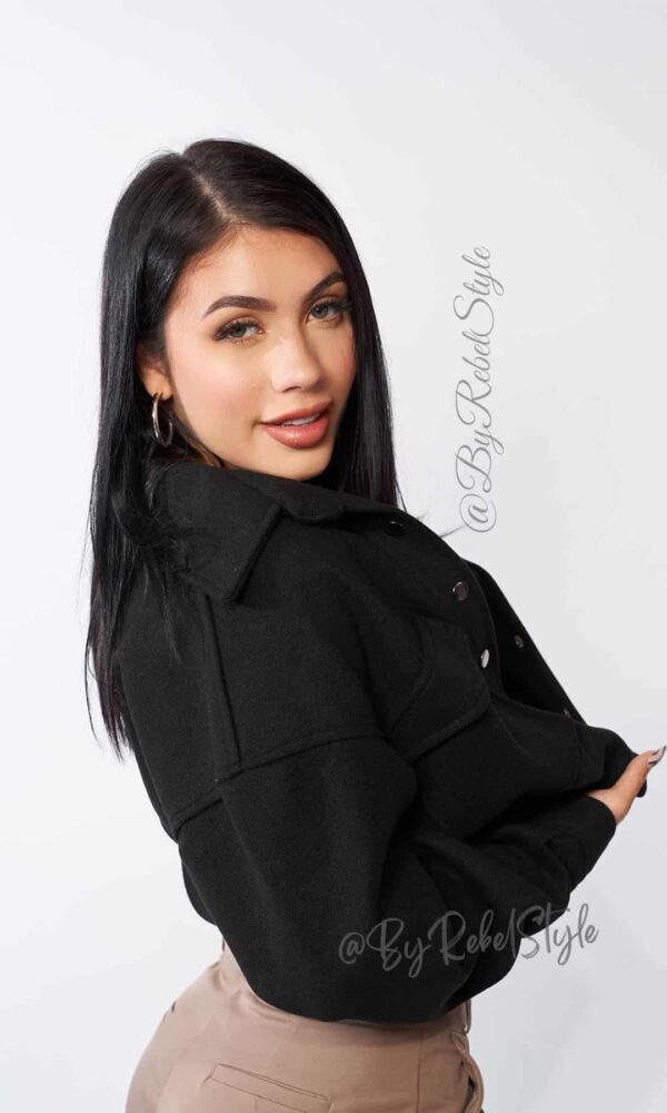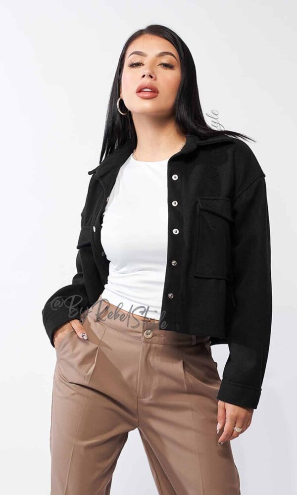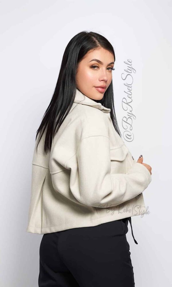 La chaqueta May es perfecta para un look casual con estilo. Confeccionada en tela de alta calidad, cuenta con un diseño corto y moderno, bolsillos frontales grandes que añaden un toque práctico, y botones metálicos que realzan su apariencia. Disponible en tonos gris, marfil y negro, esta prenda es versátil para combinar con diferentes atuendos, brindando comodidad y elegancia a cualquier look diario o semiformal. Material: Paño grueso. Detalles adicionales: Botones de broche. Nuestra modelo mide 1,68 y usa la chaqueta May en talla S