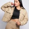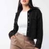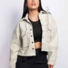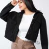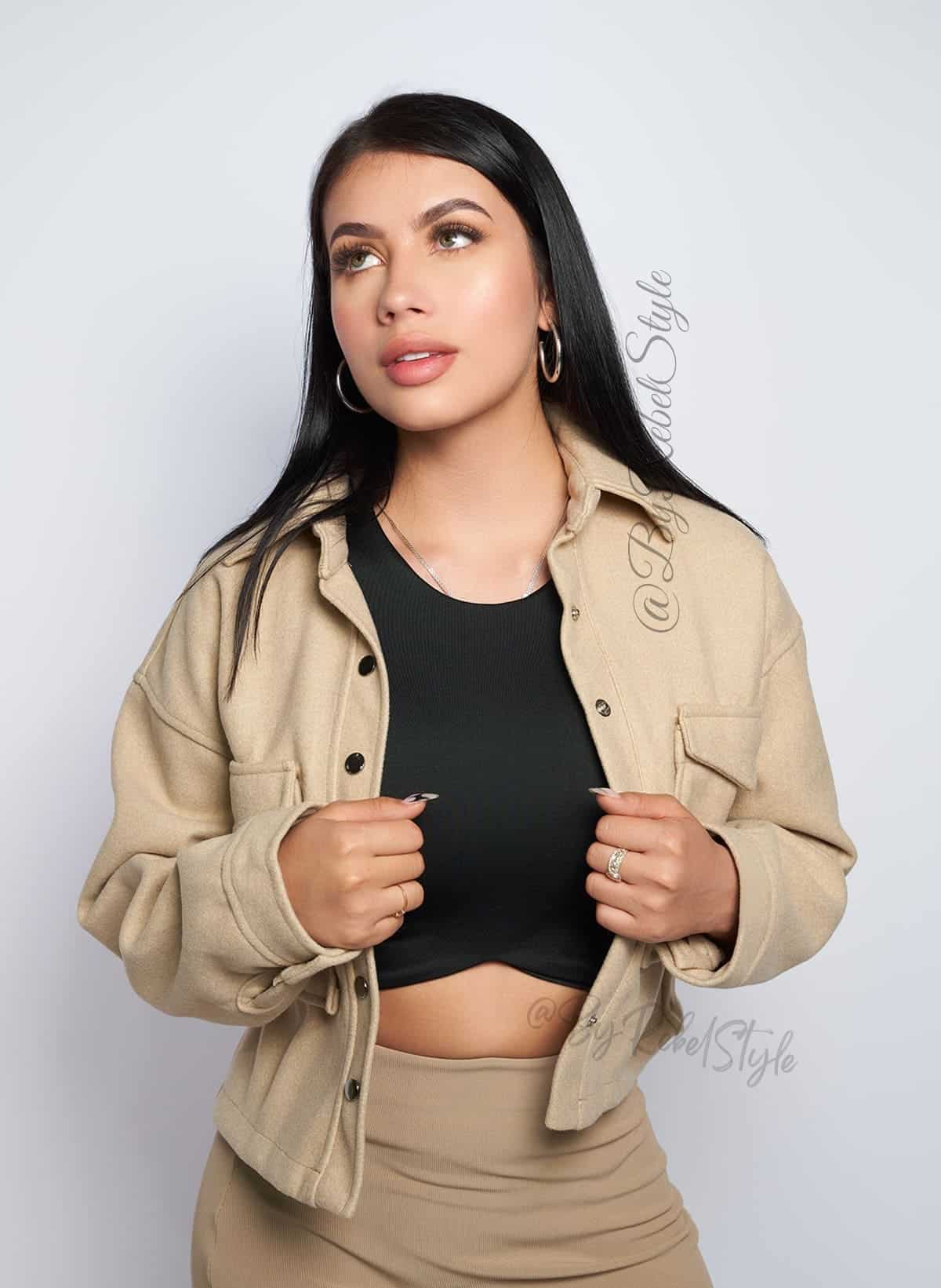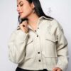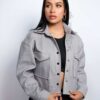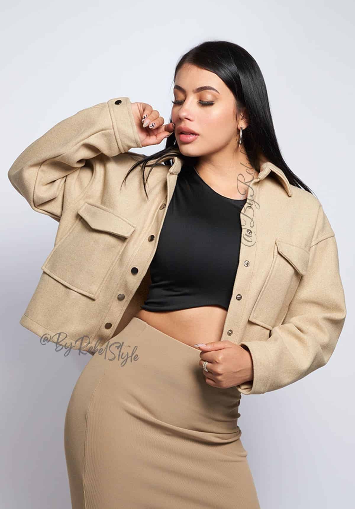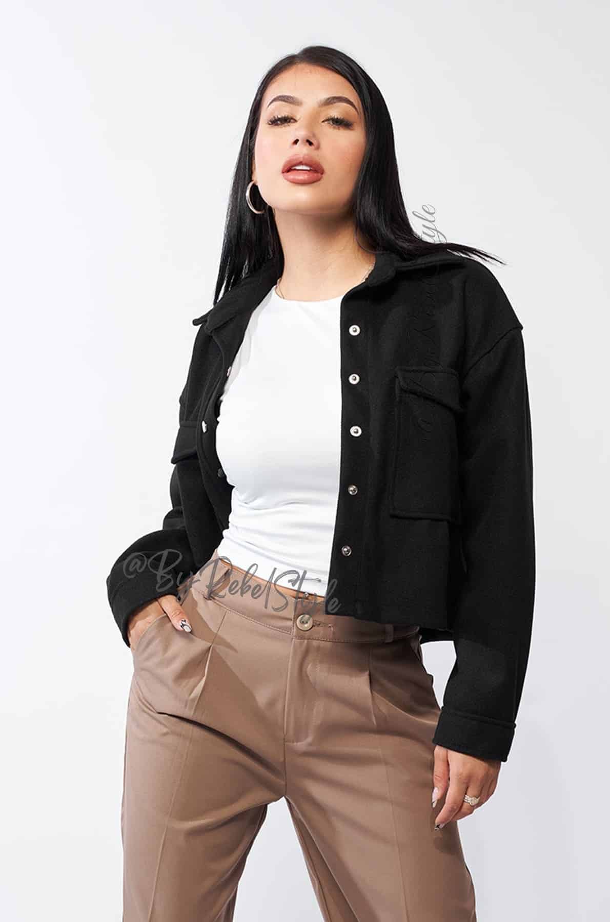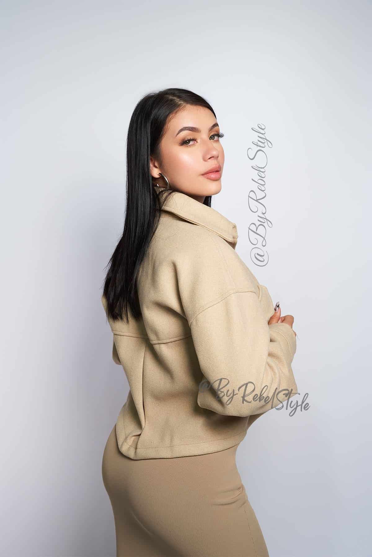 La chaqueta May es perfecta para un look casual con estilo. Confeccionada en tela de alta calidad, cuenta con un diseño corto y moderno, bolsillos frontales grandes que añaden un toque práctico, y botones metálicos que realzan su apariencia. Disponible en tonos gris, marfil y negro, esta prenda es versátil para combinar con diferentes atuendos, brindando comodidad y elegancia a cualquier look diario o semiformal. Material: Paño grueso. Detalles adicionales: Botones de broche. Nuestra modelo mide 1,68 y usa la chaqueta May en talla S