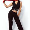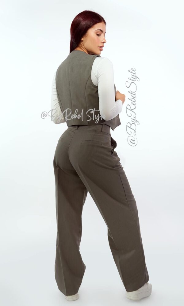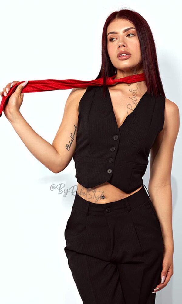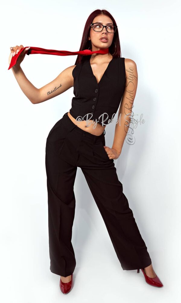 El conjunto Zulma de Rebel Style combina elegancia y versatilidad con un diseño de dos piezas compuesto por un pantalón de tiro alto y un chaleco entallado con botones frontales. Su confección en tela de líneas verticales estiliza la figura, aportando una silueta definida y moderna. El chaleco sin mangas se ajusta perfectamente, mientras que el pantalón de pierna recta brinda comodidad y estilo. Este set es ideal tanto para ocasiones formales como para looks casuales. Úsalo completo para un outfit sofisticado o combina el chaleco con jeans para un toque más relajado. El pantalón también se adapta perfectamente a blusas o camisas para un look más profesional. Es una opción funcional para el armario, permitiendo múltiples combinaciones y estilos. Material: Noches de viena, chaleco forro interno tono a tono. Nuestra modelo mide 1,68 y usa el conjunto Zulma en talla S