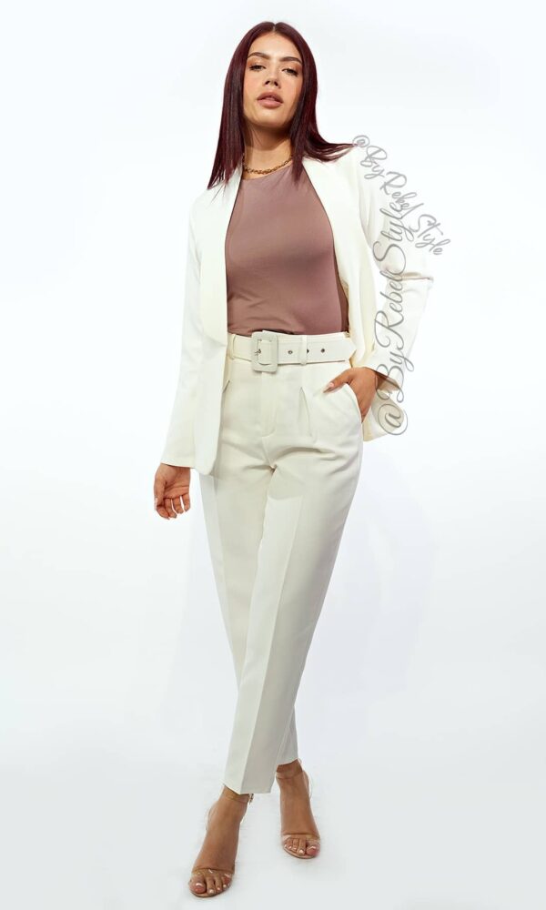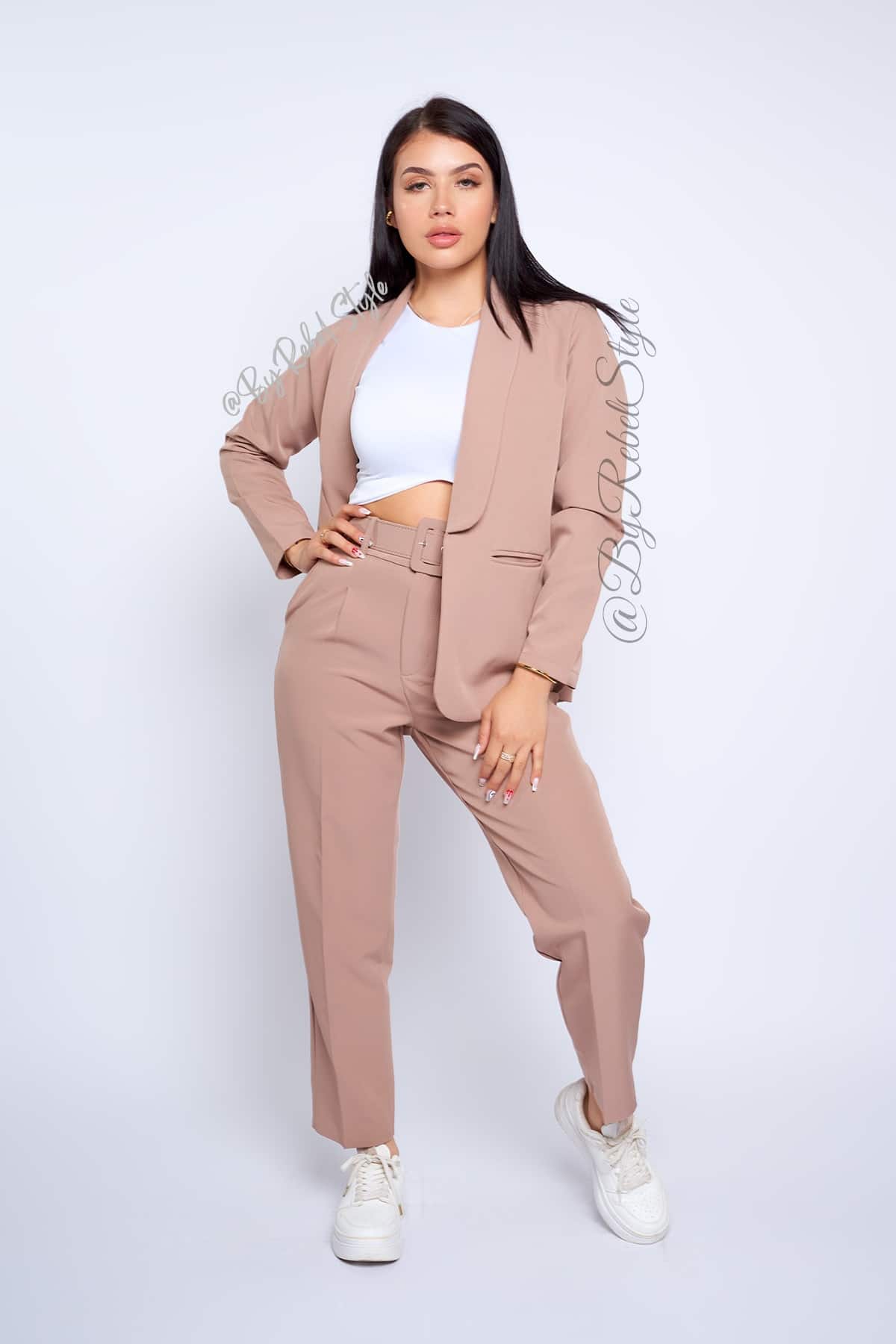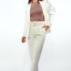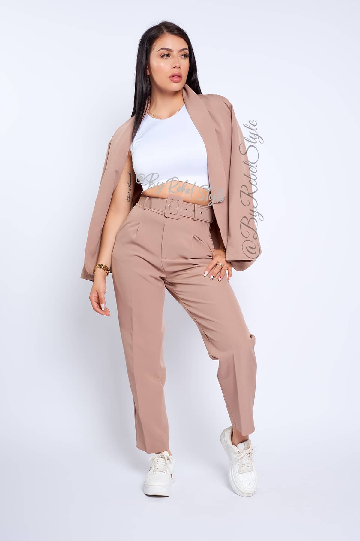 El conjunto Kudo Celeste está diseñado para ofrecer un estilo sofisticado y versátil. Con un blazer de corte estructurado que resalta la silueta y pantalones de tiro alto con un cinturón ancho que define la cintura, este conjunto es ideal para transiciones fluidas entre looks formales y casuales. El blazer puede combinarse con blusas ajustadas o tops ligeros, mientras que los pantalones se prestan tanto para una reunión de oficina como para una salida de fin de semana. Las piezas pueden usarse por separado para maximizar su versatilidad, ya sea combinando el blazer con jeans o el pantalón con camisetas ajustadas. Este conjunto es una opción excelente para aquellas que buscan estilo, comodidad y múltiples formas de uso en su guardarropa diario. Material: Noches de viena Nuestra modelo mide 1,68 y usa el El conjunto Kudo Celeste en talla S