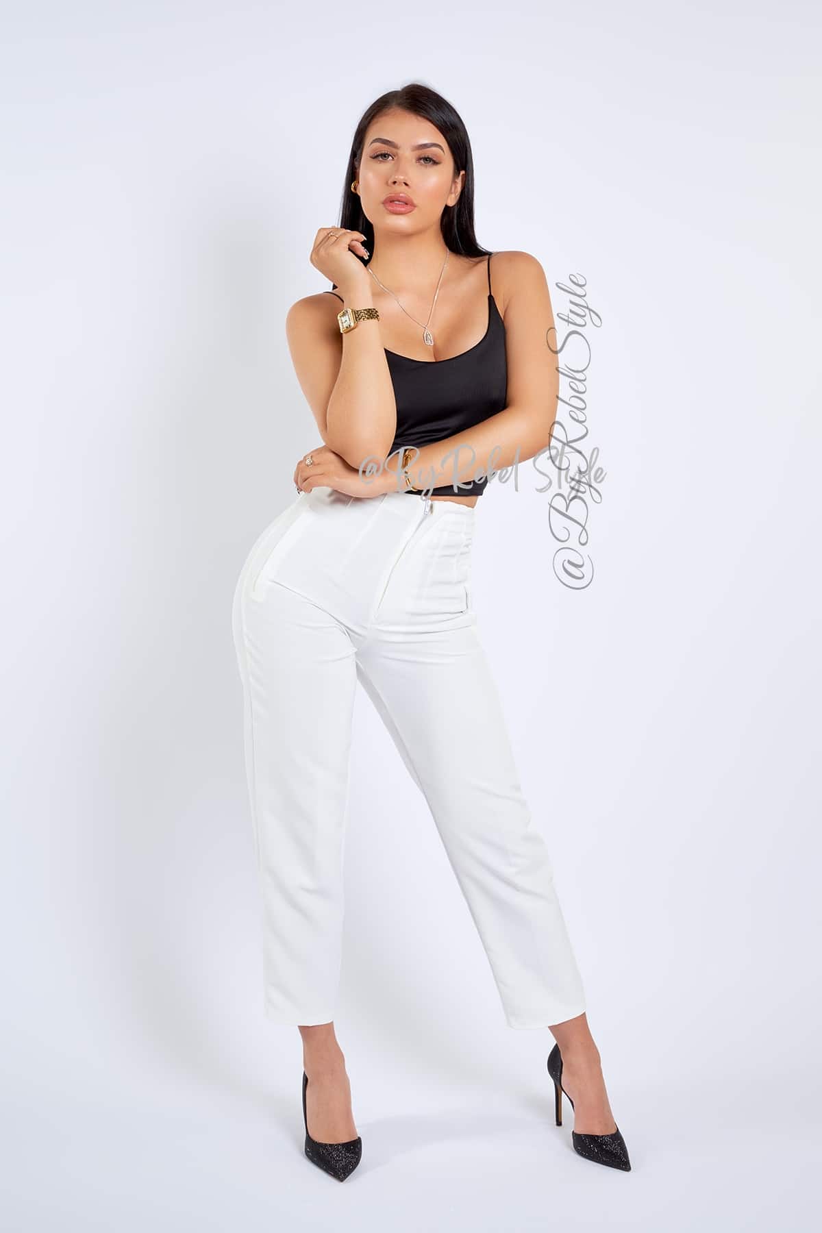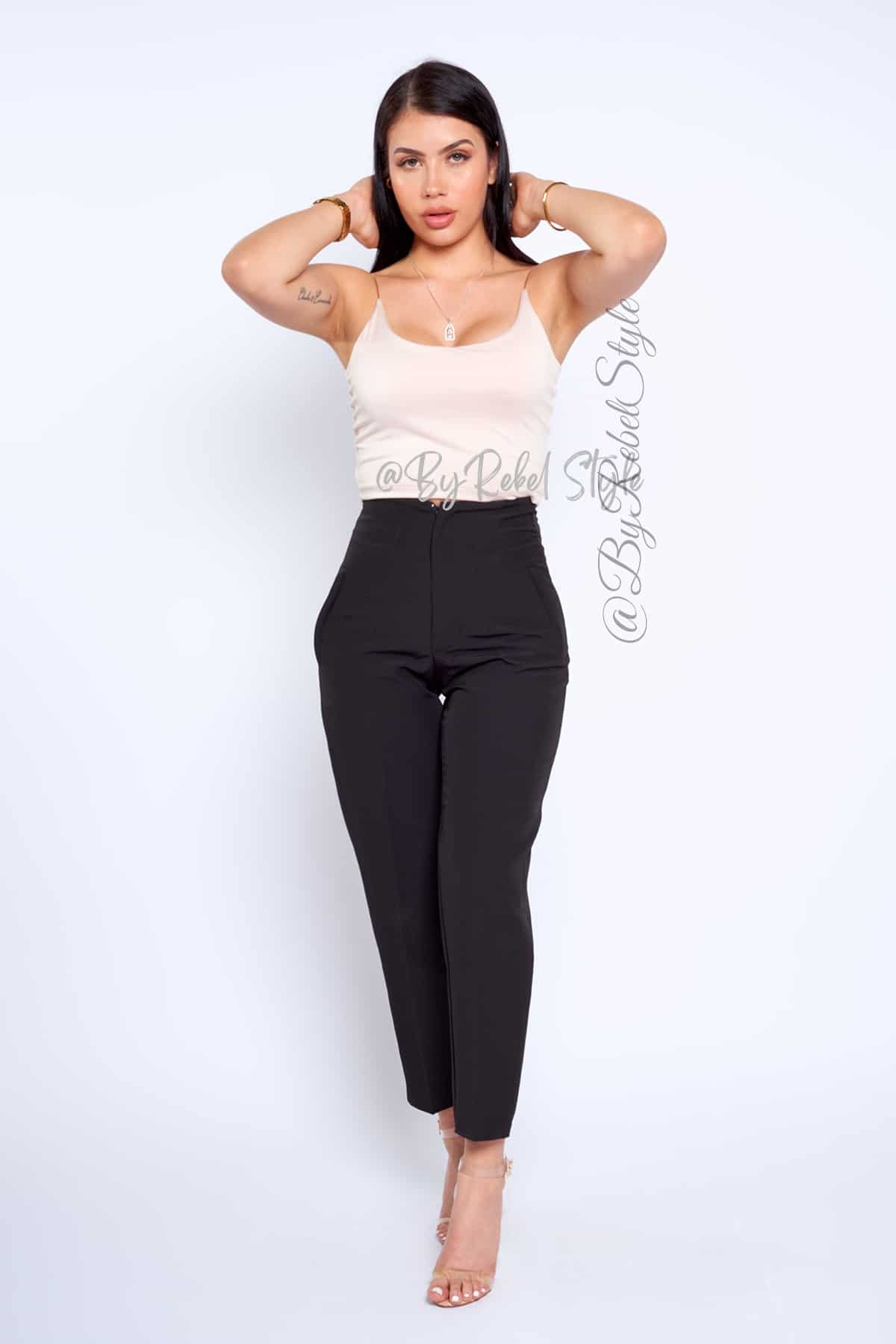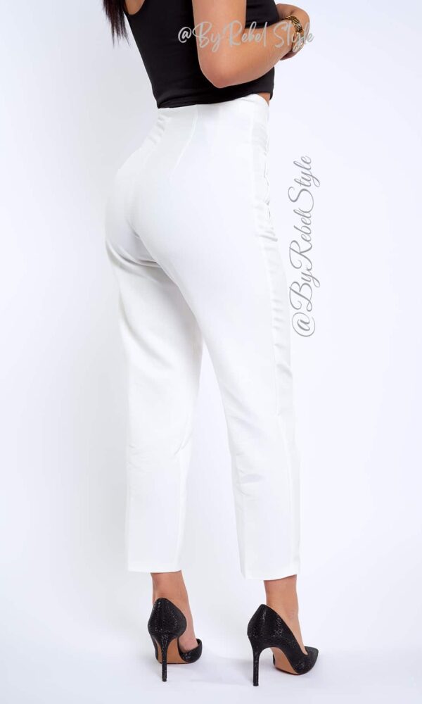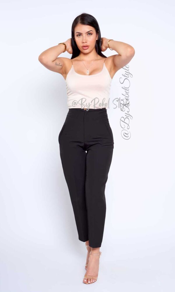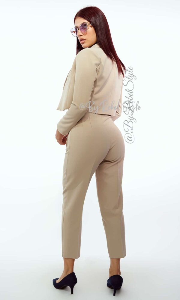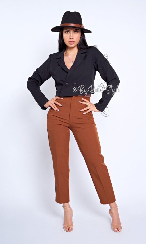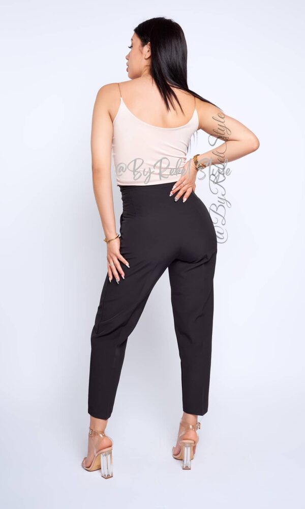 El pantalón Tania está confeccionado en un tejido de alta calidad que ofrece comodidad y un ajuste favorecedor. Su diseño cuenta con costuras frontales que estilizan la figura, cintura alta que realza las curvas y un corte tobillero ideal para un look moderno y sofisticado. Este pantalón es perfecto para ocasiones tanto formales como casuales, combinándolo con blusas o tops ajustados. Su versatilidad te permite usarlo con tacones para un estilo elegante o con zapatillas para un look casual pero chic. Ideal para realzar tu figura y crear combinaciones que te harán destacar en cualquier ocasión. Material: Noches de viena, forro interno tono a tono. Detalles adicionales: Hombreras. Nuestra modelo mide 1,68 y usa El pantalón Tania en talla XS